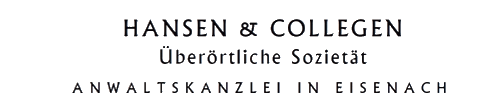 Hansen & Collegen • Rechtsanwalt Dr. phil. Jörg Hansen • Karlsplatz 5 • D-99817 Eisenach